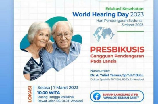 Nama Kegiatan ;edukasi kesehatan telinga dan pendengaran dalam rangka WHD 2023: presbikusis Waktu kegiatan ; 7 Maret 2023 pukul10.00-11.00WITA Tempat Kegiatan ; RS DR. J. H. AWALOEI Bentuk kegiatan ; edukasi kesehatan telinga dan pendengaran…